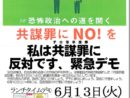 私は、共謀罪に反対です、緊急デモ6.13/6.14