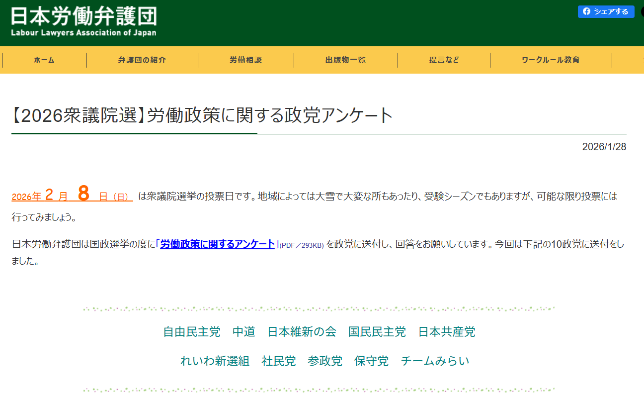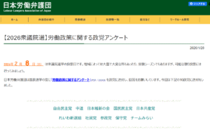 日本労働弁護団では、このご協力をくださった各政党からお寄せいただいた回答をまとめ、ここに掲載します。皆様、是非ご参照下さい(下記)。